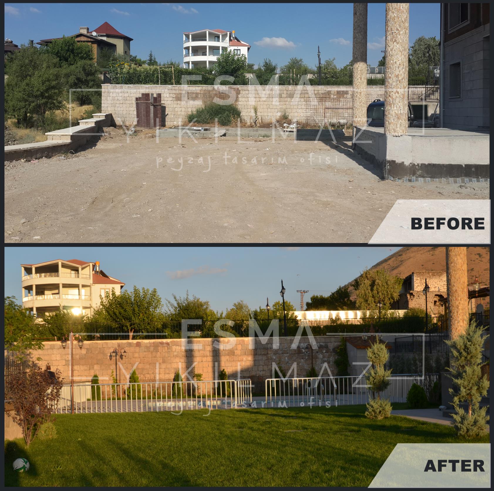 Erenköy, Kayseri ‘de yer alan modern mimari ile göze çarpan yapımızın bahçesinde birçok özel, butik tasarım kullanarak alışılagelmiş peyzaj uygulamalarına yeni bir yön verdik.