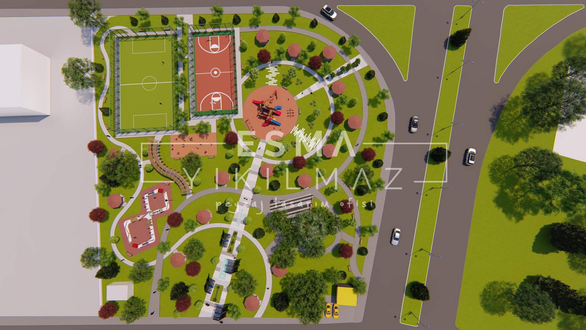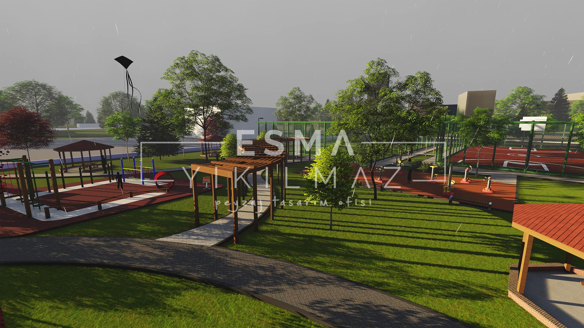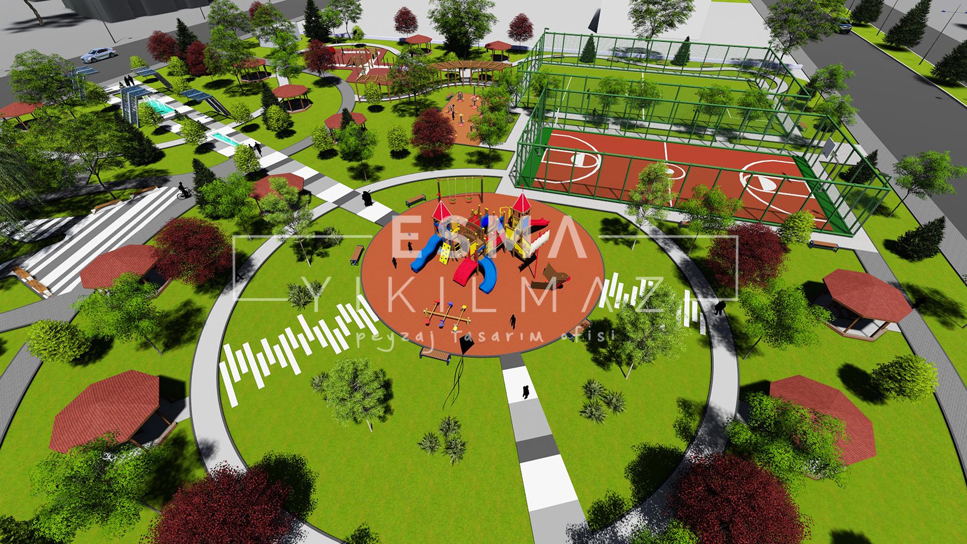 Yüksek Katlı Yapıların Etrafını Çevrelediği Bu Alan,Beton Kütlelerin Oluşturduğu Soğukluk Hissiyatını Gidermek Amacıyla ,Farklı Aktivelerin Bir Arada Bulunduğu Fonksiyonel Bir Park Olarak Tasarlanmıştır.